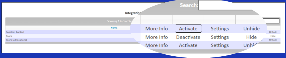 - On this page, you will see Constant Contact in the table. Select ‘Activate’ to the far right of the ‘Constant Contact’ option in the table.