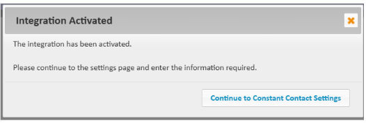 - You will then get a pop-up, where you will want to select 'Continue to Constant Contact settings'.