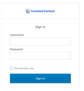 - Select the first button on the page to ‘Connect Constant Contact Account’. You will then be prompted to log in to your Constant Contact account.