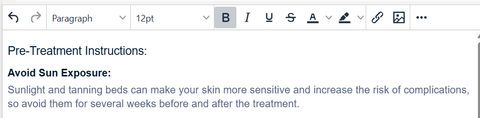 Estimated Reading Time: 3 MinutesYou can automate the process of sending pre and post care instructions for a service or procedure. By creating email templates in Wylie that include pre/post care instructions in the body of the email or as an attachment, you can then add or edit a service and configure the template to be sent at a specific time when the service is booked.