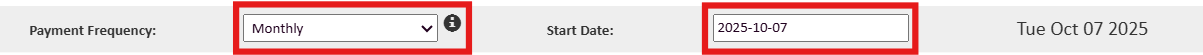 6. Choose 'Payment Frequency', then 'Start Date'.