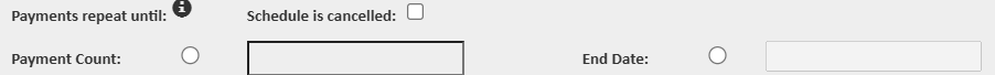 - 'Payment Count': Enter the number of recurring payments that will be auto-billing before the schedule is stopped automatically.